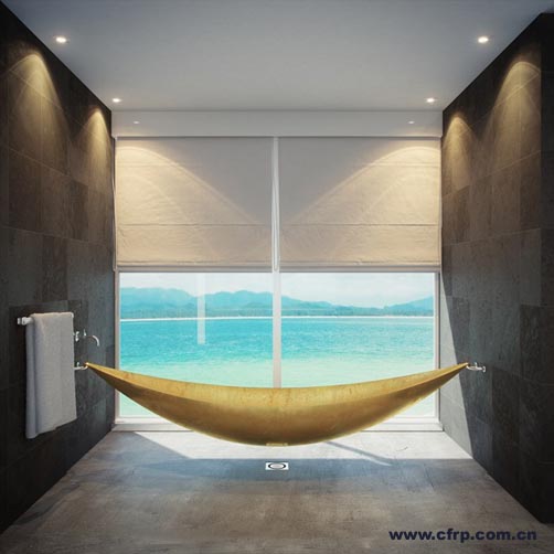 這種新型設(shè)計(jì)采用了運(yùn)用在賽車運(yùn)動(dòng)以及航天工業(yè)中的碳纖維技術(shù),讓人們體會(huì)更為科技化的沐浴享受。碳纖維的材質(zhì)讓這款浴缸更為結(jié)實(shí)難用,并在表面附著一層鉑金,更顯得在簡約中透露著些許奢華。躺在這樣扁舟一樣浴缸里沐浴,你首先會(huì)想到的就是那首著名的《赤壁賦》了。