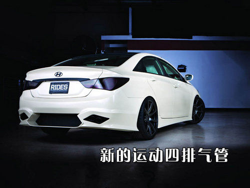 這輛SEMA版索納塔是基于2011款的車型改裝而來,外形較老款而言更為時尚運動。車身采用RIDES為它定制生產的空氣動力學套件,前包圍設計的緊湊而動感。犀利的前大燈做了特殊的熏黑處理,炯炯有神的“天使眼”氙氣燈光線充足。前包圍兩側進氣口上方安裝了LED日間行車燈,與奧迪A6(報價 圖片 參數)L(報價 圖片 參數)的款式極為相像 內容來自123456