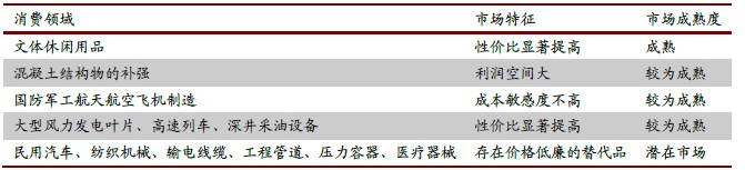 表2:我國碳纖維具體消費(fèi)領(lǐng)域特征分析
