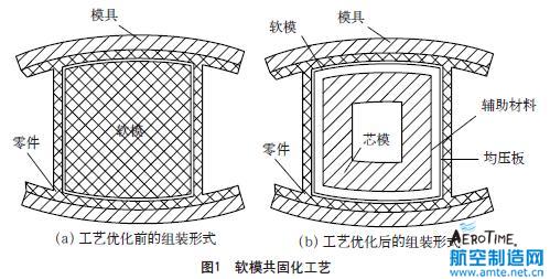 針對(duì)上述問(wèn)題,我們經(jīng)過(guò)反復(fù)試驗(yàn),在工程化生產(chǎn)中不斷改進(jìn),將軟模共固化工藝優(yōu)化為圖1(b)所示形式,利用這種工藝方案連續(xù)生產(chǎn)300多架份的復(fù)合材料產(chǎn)品,質(zhì)量一直穩(wěn)定。