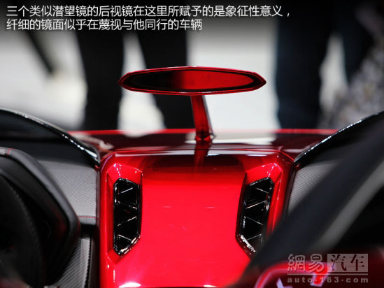 三個類似潛望鏡的后視鏡在這里所賦予的是象征性意義,纖細的鏡面似乎在蔑視與他同行的車輛,