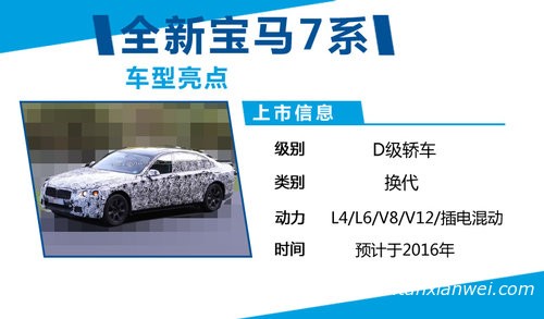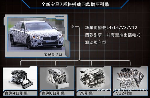 動力方面, 全新寶馬7系將搭載三款排量引擎,包括一款直列四缸發(fā)動機,最大輸出功率為194kw;直列六缸引擎的最大功率254kw;最大功率為343kw的V8發(fā)動機以及現(xiàn)款所使用的V12引擎。寶馬新一代7系除搭載傳統(tǒng)動力系統(tǒng)外,未來還有望推出插電式混動版車型。