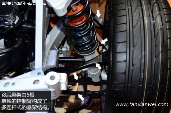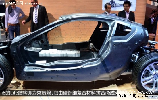 整個乘員艙的結(jié)構(gòu)由多層碳纖維復合材料拼合而成,輕量化和高強度是它最大的特點,這樣的設計類似于F1賽車中駕駛艙的單體橫造結(jié)構(gòu)(由碳纖維復合材料構(gòu)成),而最終的效果就是i8的車身重量不到1.5噸。