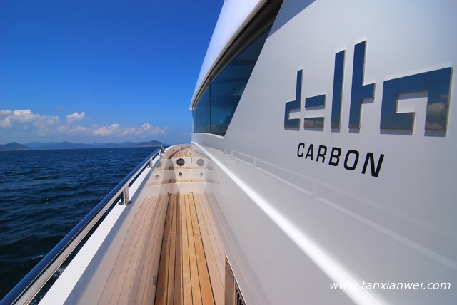由瑞典 Delta Powerboats 公司推出的 Delta 54 Carbon Cruiser 游艇已于今年五月在香港首發(fā),并將于今年10月在深圳首次亮相中國內(nèi)地。作為全球首款全碳纖維豪華游艇,Delta 54 使用的材質(zhì)近似蘭博基尼超級跑車,重量不僅比同型游艇減輕三成而且擁有更快的航行速度,用小馬力就可輕松達到30節(jié)。