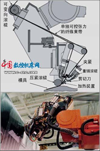 機(jī)床,預(yù)浸料帶一般呈硬挺狀態(tài),通常只允許在很小的范圍內(nèi)變形。