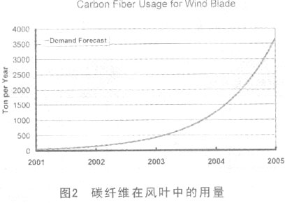 碳纖維的應(yīng)用可以減少負(fù)載和增加葉片長度,從而制造適合于低風(fēng)速地區(qū)的大直徑風(fēng)葉,使風(fēng)能成本下降。