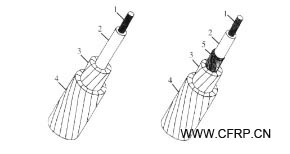 (1、碳纖維增強環(huán)氧樹脂復(fù)合材料內(nèi)芯;2、玻璃纖維增強環(huán)氧樹脂復(fù)合材料外芯;3、第一層梯形鋁導(dǎo)線;4、第二層梯形鋁導(dǎo)線;5、保護性涂層或膜;)