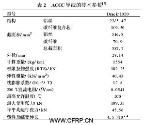 表 2 列出了 ACCC導(dǎo)線的技術(shù)參數(shù) ,以供制造和使用時參考。