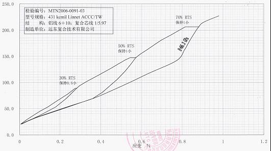 結(jié)果表明,碳纖維復合芯經(jīng)過不同加熱溫度和不同加熱時間后,恢復正常溫度后,芯仍能保持不小于90%計算拉斷力的拉力。