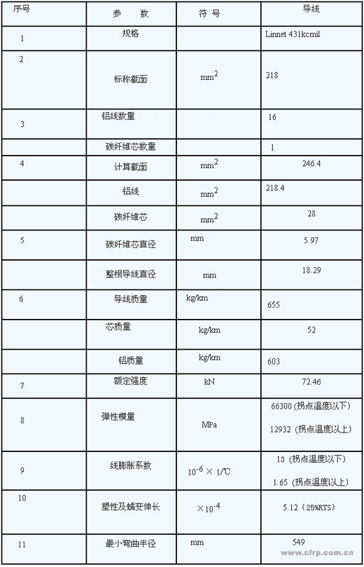 4.1.5 碳纖維合成芯導線參數(shù)表
