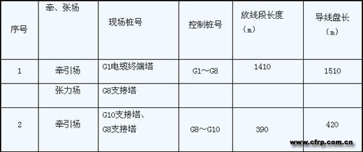 選擇和布置牽張場。采用一臺牽引機、一臺張力機進行導線展放施工,一牽一展放方式。為了避免ACCC導線與原線路舊導線之間的磨碰。本工程利用原線路LGJ-185導線作為牽引繩張力展放ACCC導線。