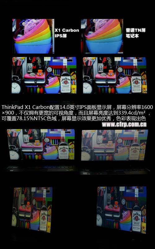 ThinkPad X1 Carbon配置14.0英寸IPS面板顯示屏,屏幕分辨率1600 ×900,不僅擁有更寬的可視角度,而且屏幕亮度達到339.4cd/m² ,可覆蓋78.15%NTSC色域,屏幕顯示效果更加優(yōu)秀,色彩表現(xiàn)出色,超過目前市面上95%以上的筆記本的顯示效果。