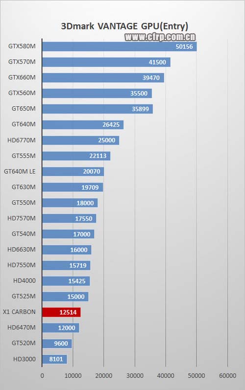 對于機身厚度不足18mm的超極本來說,由于機身內(nèi)部空間非常有限,為保證整機穩(wěn)定性,通常不會采用獨立顯卡,所以采用HD4000核心顯卡的ThinkPad X1 Carbon游戲性能非常有限,其3Dmark VANTAGE GPU項的得分,雖然與上一代核心顯卡HD3000相比性能的提升非常明顯,但和新一代獨立顯卡還存在較大的差距,不過仍然可在中低畫質(zhì)下滿足《街霸4》、《實況足球》等對顯卡性能要求不高的游戲。