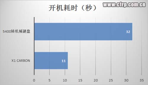 更快的響應速度是超極本的幾大特性之一,特別是在開機速度上,在相同的測試環(huán)境下, X1 Carbon的開機速度僅為傳統(tǒng)筆記本的三分之一,特別是在安裝更多軟件以后,這種優(yōu)勢更加明顯。當然更快的響應速度不僅僅體現(xiàn)在開機速度上,還包括喚醒耗時,程序打開耗時等方面,工作效率提升明顯。