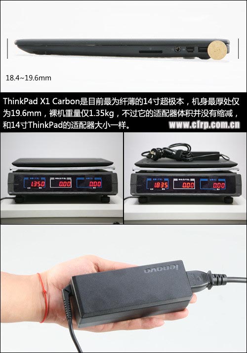 在厚度與重量方面,ThinkPad X1 Carbon超越了英特爾對超極本的要求,整機纖薄程度更加極致,其中最薄處僅為8mm,機身最厚的地方也僅為19.6mm,而且得益于碳纖維材質(zhì)的使用,它裸機重量1.35kg在超極本中也是相當輕的水平,移動便攜性非常優(yōu)秀。