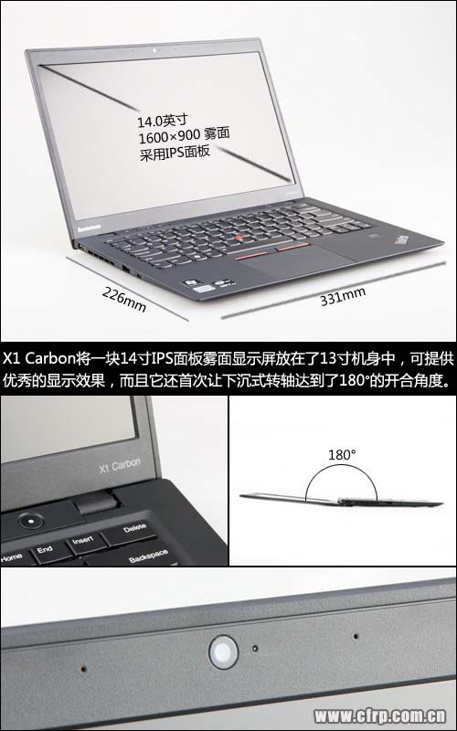 在屏幕的選擇上,X1 Carbon拋棄了X1上采用的無界金剛屏,與大多數(shù)高端商務筆記本一樣配備防眩光霧面顯示屏,采用窄邊框設(shè)計,使13.3寸的機身可以容納14寸顯示屏,而且屏幕分辨率達到1600×900,顯示的內(nèi)容更加豐富,且X1 Carbon的屏幕為IPS面板,與大多數(shù)筆記本搭載的TN面板相比,可提供更大的可視角度和更真實的色彩表現(xiàn)。