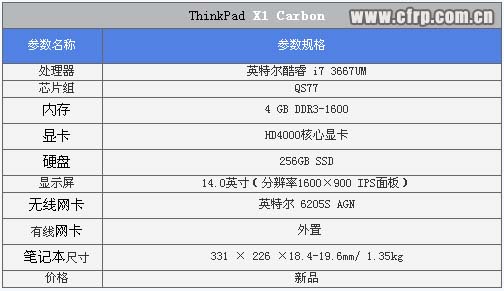由于英特爾對超極本的硬件有嚴格的要求,所以ThinkPad X1 Carbon并沒有像X1一樣搭載標準電壓處理器,而是采用了目前定位最高的英特爾第三代酷睿低功耗處理器i7 3667UM,選用HD4000核心顯卡,配置256GB固態(tài)硬盤和4GB DDR3 1600內(nèi)存,其整機性能在超極本中處于較高的水平。