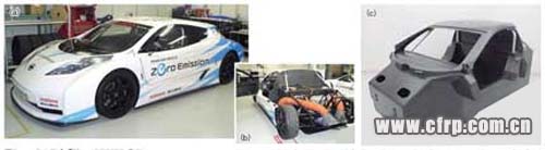 在賽車及跑車中使用最多的是將預浸料層疊并利用熱壓使其固化的熱塑性CFRP。比如,日產汽車的“LEAF”(中國名:聆風)的馬達、再比如將減速機中置的EV賽車“LEAF NISMO RC”演示款都使用預浸料制造了從駕駛室到通風罩的絕大部分部件(圖1)。