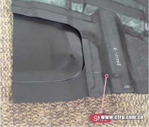 制造雷克薩斯LFA駕駛室時采用了三種成型方法。側欄及前部艙壁等具有中空構造的主要骨架采用了預浸料工藝,前部碰撞吸能盒、A柱及地板采用了RTM工藝,后部部件采用了以碳纖維加固的SMC(片狀模壓料)成型工藝(圖11)。