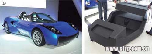 富士重工業(yè)2011年發(fā)售的400輛限量車型“翼豹WRX STItS”的車頂就使用了VaRTM工藝〔圖3(a)〕。據(jù)該公司介紹,在小批量生產時,因不需要制造模具,所以模具費用低于RTM。