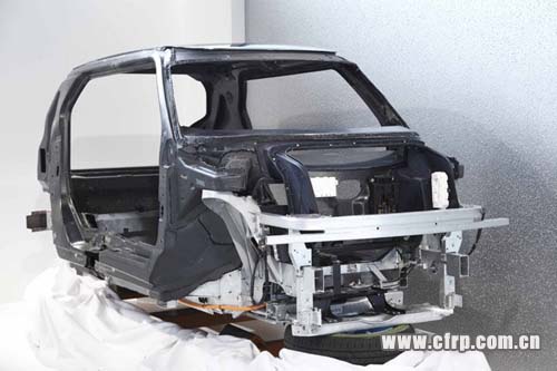 大部分采用預浸料工藝,地板、A柱及碰撞吸能盒采用RTM工藝制成。后部部件采用SMC成型工藝制成。