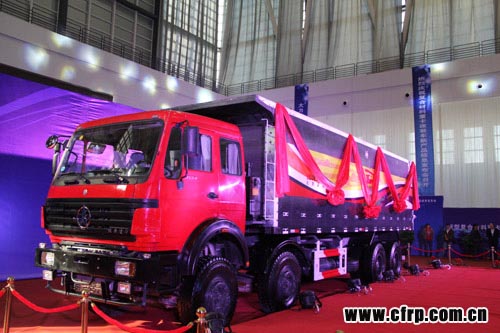 北奔在今年北京車展上展示的V3輕量化牽引車(H09)自重低于8噸。通過優(yōu)化并匹配動(dòng)力傳動(dòng)、制動(dòng)、轉(zhuǎn)向、車電及發(fā)動(dòng)機(jī)輔助系統(tǒng)等不同成本的系列化模塊,組合形成4x2、6x2、6x4、8x4四種驅(qū)動(dòng)型式的牽引車、載貨車、自卸車系列車型。