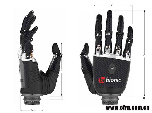 這種碳纖維義肢叫BeBionic3肌電流機(jī)械手臂(BeBionic3 myoelectric hand),由英國公司RSLSteeper制造,主體由碳纖維打造而成,加上鋁合金關(guān)節(jié),質(zhì)輕但堅(jiān)韌,而且功能遠(yuǎn)勝一般產(chǎn)品。