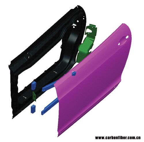 圖3 作為汽車復(fù)合材料領(lǐng)域的資深專家,Antony Dodworth表示,將碳纖維復(fù)合材料整合到轎車或卡車中的最大障礙主要發(fā)生在設(shè)計和工程開發(fā)階段。例如,一個復(fù)合材料的車門(上圖),能夠使用比金屬車門(下圖)少得多的部件被設(shè)計和制造出來