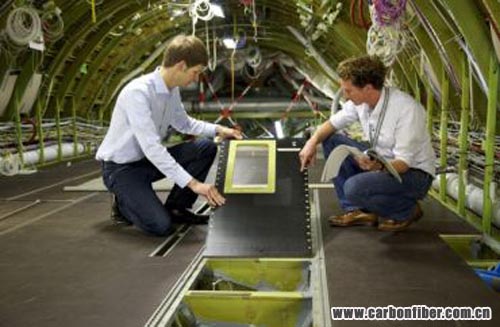 在客機(jī)結(jié)構(gòu)中采用碳纖維復(fù)合材料,不僅可以減輕機(jī)身重量,其本身亦發(fā)揮了重要的承力作用。波音新款787夢(mèng)想客機(jī)和空客A350的機(jī)體結(jié)構(gòu)用的幾乎全是碳纖維。在一些關(guān)鍵承力部位,像龍骨梁(keel beam)、后部隔框(rear bulkhead)、中央翼盒(center wing box),碳纖維也在發(fā)揮著愈加重要的作用。