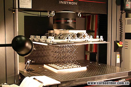 在實驗室中,蜂窩復(fù)合材料制備的樣品進行測試它的強度性能。研究人員說,新材料,可以徹底改變組裝飛機,航天器,甚至更大的結(jié)構(gòu),如堤壩和防洪??堤。