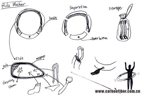 來自伊萊克斯設(shè)計大賽的獲獎作品碳纖維Hula Washer(呼啦圈洗衣機(jī))是一款既可以讓你強(qiáng)健身體又可以順便清洗一下衣物的超級創(chuàng)意產(chǎn)品。