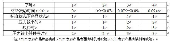 觀察材料的流動分析圖不同顏色可以看到,材料流動所經(jīng)歷的時間不同,其中最長流動時間為0.1s,具體流動如下圖:
