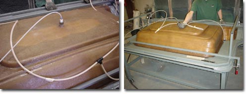 RTM和LRTM工藝也可以使用預制件和嵌件,當使用預制件時可得到高纖維體積含量的產(chǎn)品。LRTM工藝產(chǎn)品可以不上膠衣,只要一般的脫模蠟,產(chǎn)品就可脫模。但RTM產(chǎn)品如不用膠衣,脫模較為困難。