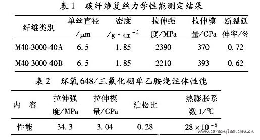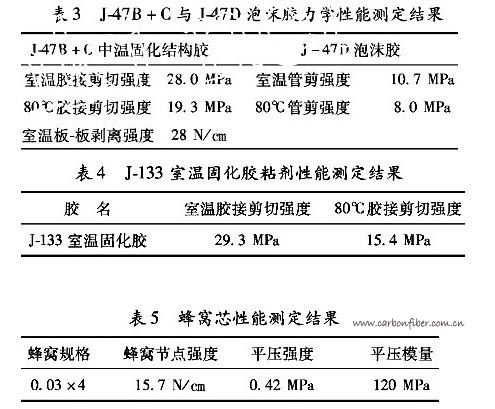 由于天線(xiàn)反射面必須能夠反射電磁波,蜂窩夾層結(jié)構(gòu)復(fù)合材料中面板材料必須由導(dǎo)電材料制成。碳纖維具有良好的導(dǎo)電性能,且具有良好的力學(xué)性能沿高模量碳纖維軸向的熱膨脹系數(shù)為-0.7x10-6/℃,而其垂直于纖維方向的熱膨服系數(shù)為23x10-6/℃。它具有明顯的各向異性特點(diǎn),可通過(guò)工藝設(shè)計(jì),滿(mǎn)足各種天線(xiàn)反射面的性能要求。實(shí)踐表明碳纖維是天線(xiàn)反射面面板材料的理想選擇之一。Kevlar-49纖維同樣具有良好的力學(xué)性能,從結(jié)構(gòu)性能角度考慮也是天線(xiàn)面板材料的理想選擇。但由于其不導(dǎo)電,當(dāng)用于天線(xiàn)反射面時(shí),必須對(duì)其反射表面進(jìn)行金屬化處理。由此可知,天線(xiàn)反射面的結(jié)構(gòu)設(shè)計(jì)與所用材料性能有著密切的關(guān)系。選用不同的材料會(huì)使天線(xiàn)反射面的結(jié)構(gòu)特性有很大的差異,為了滿(mǎn)足C波段天線(xiàn)結(jié)構(gòu)的設(shè)計(jì)要求,在進(jìn)行了大量的材料性能試驗(yàn)的前提下,最終選用材料的性能測(cè)試結(jié)果列于表1至表5中。