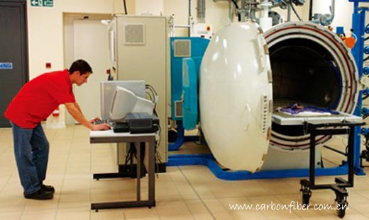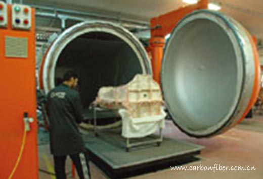 預浸料/熱壓罐成型工藝的優(yōu)點是:施工簡便,對工人的技能要求不高,生產(chǎn)效率高,制品質(zhì)量穩(wěn)定且強度高,因此,該工藝已成為汽車結(jié)構(gòu)件的主流生產(chǎn)技術。需要說明的是,在熱壓罐中固化成型的制品與在固化爐中成型的制品相比,其致密性更高。這是因為熱壓罐可同時加熱加壓,其施加的壓力通常為2~3個大氣壓,而固化爐則不能施壓,這使得在熱壓罐中成型的制品具有更高的致密度,其強度性能更好,因而更適合于主結(jié)構(gòu)件的成型。對于次結(jié)構(gòu)件而言,固化爐成型完全可滿足其強度和質(zhì)量要求。當然,熱壓罐的成本幾乎為固化爐的2~3倍。
