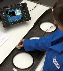 飛機(jī)制造商、維修服務(wù)商、以及航空公司近期均開始使用超聲相控陣技術(shù)確保飛機(jī)復(fù)合材料組件的加工質(zhì)量。其中,由碳纖維增強(qiáng)聚合物(CFRP)材料制成的組件具有多種形狀及不同厚度,因此,如何對這種材料進(jìn)行檢測成為一項難題。雖然對該類圓角材料的檢測目前尚新,但隨著在飛機(jī)構(gòu)造中越來越多地使用CFRP疊層板,這項檢測正變得越來越重要。