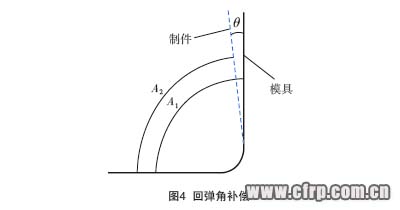 回彈角因與模具材料,鋪層方向及結(jié)構(gòu)對稱性有關(guān),可通過數(shù)字模擬及試驗測試的方法得到,目前用的較多的是通過經(jīng)驗值結(jié)合試驗值來獲得回彈角的大小,而數(shù)字模擬有待于提高對熱壓罐溫度場及復(fù)合材料反應(yīng)機(jī)理的精準(zhǔn)分析。在模具設(shè)計時,預(yù)先把回彈角考慮進(jìn)去,即制件夾角加上回彈角等于模具夾角,使制件在脫?;貜椇蠓瞎こ虜?shù)模要求。