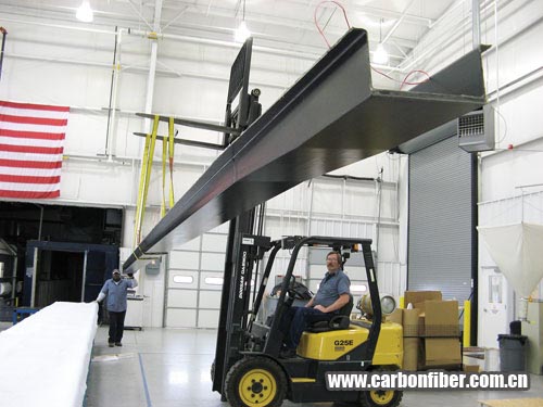 作為該計劃第二階段的一部分,波音下屬的圣路易斯公司制造了長達21m的部件,包括一個主梁和3種不同的機翼表皮結(jié)構(gòu):一種厚板增強的表皮,使用了Grafil公司的HR 40 12K高模量碳纖維;一種增硬的表皮,使用了氰特T40/800B中模量碳單向帶以及由氰特Thornel T-650/35 3K碳纖維制成的高強度織物;一種夾層結(jié)構(gòu)的表皮,使用了非金屬的蜂窩芯。