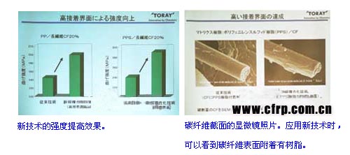 然而,當(dāng)熱可塑CFRP的基體樹脂使用聚丙烯(PP)或者聚亞苯基硫醚(PPS)時(shí),因碳纖維和樹脂的界面接合性較差,所以存在無法獲得所期待的高強(qiáng)度的問題。材料會(huì)沿界面剝離,在受到大的沖擊時(shí),會(huì)只有樹脂受到破壞,所以復(fù)合材料的強(qiáng)度基本上取決于樹脂的強(qiáng)度。 內(nèi)容來自123456