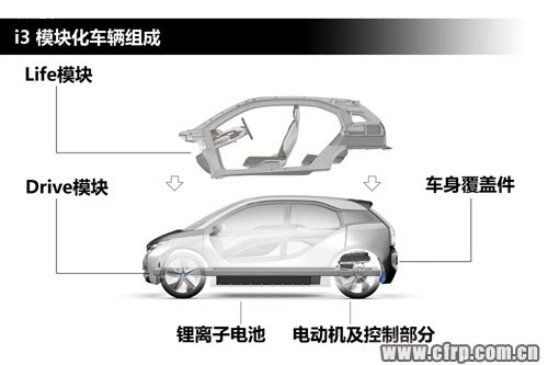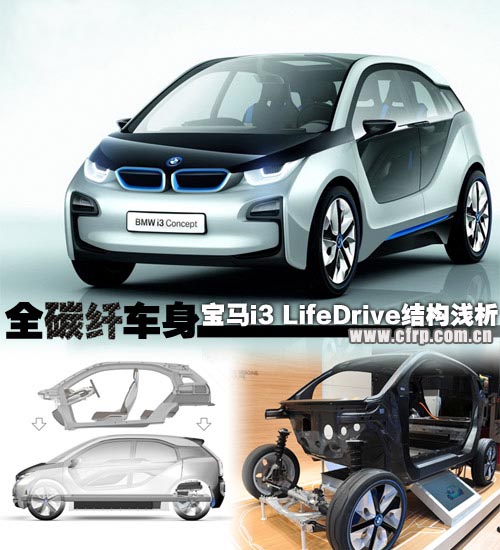 寶馬的i系列電動車有兩個最重要的亮點,其一便是模塊化的制造理念LifeDrive結構,乘員艙與底盤部分的拼合,就像拼積木一樣簡單,這必將為今后車輛的改裝、維修、功能擴展等等帶來一場革命;第二大亮點便是全碳纖維車身,這標志著碳纖維材料將能夠滿足批量生產的要求。