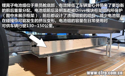 寶馬i系列車型采用了“LifeDrive”模塊架構,它由“Life”和“Drive”兩個獨立的模塊組成,“Life”代表乘員艙部分,采用超輕量化并且高強度的CFRP碳纖維復合材料構成,而“Drive”則將懸架、蓄電池組、驅動系統(tǒng)和碰撞防護結構納入整個模塊中。仔細看就會發(fā)現,這種結構的理念其實與傳統(tǒng)的非承載車身相似,不過高強度的復合碳纖維乘員艙是那些傳統(tǒng)非承載車身的車廂所望塵莫及的。