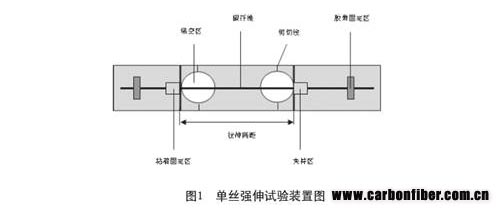 碳纖維單絲的強伸試驗不同于其他柔性纖維的單纖維試驗。碳纖維不能直接夾持在預(yù)定隔距的兩夾頭間。其原因很簡單,一是纖維的脆性使整個夾持成功率極低,纖維往往在夾持過程中因彎折而斷裂。二是即使夾持成功,夾持端會對纖維產(chǎn)生損傷,使纖維的斷裂發(fā)生在鉗口處,所測數(shù)據(jù)不能反映纖維的真實特性。因此,碳纖維單絲的強伸試驗首先要求將單根碳纖維粘貼于特制的試樣卡上,