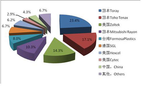 由于碳纖維生產(chǎn)工藝復雜、技術含量高,加之政治因素限制技術和設備等引進,目前全球碳纖維技術和生產(chǎn)仍主要控制在日本和美國手中。全球可實現(xiàn)碳纖維產(chǎn)業(yè)化的國家和地區(qū)不足20個;規(guī)?;a(chǎn)企業(yè)不超過12家。日本東麗、日本東邦、美國卓爾泰克、日本三菱麗陽是全球碳纖維產(chǎn)能排名前四的生產(chǎn)商,這四家分別占全球碳纖維總產(chǎn)能的23.4%、17.1%、14.3%和10.3%,而中國企業(yè)僅占4.3%。